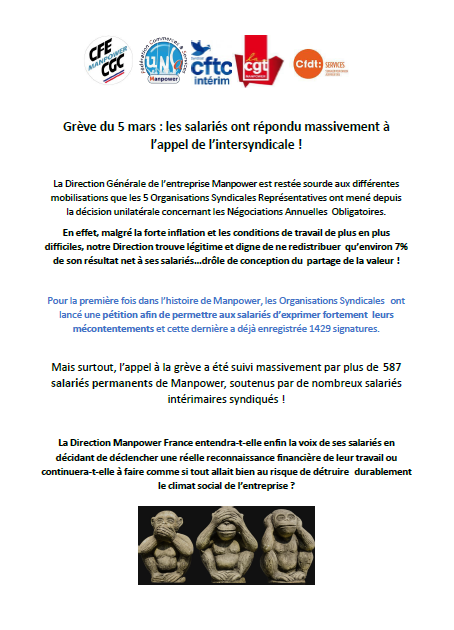 Grève du 05 mars 2024 les salariés ont répondu massivement à l’appel de l’intersyndicale!